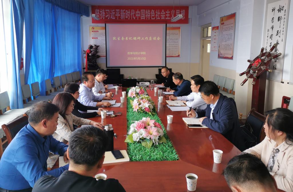 5月10日下午,党委书记狄生奎在学校办公室负责人陪同下到数学与统计学院开展调研工作。数学与统计学院班子成员、办公室相关人员及教研室主任参加了调研会。