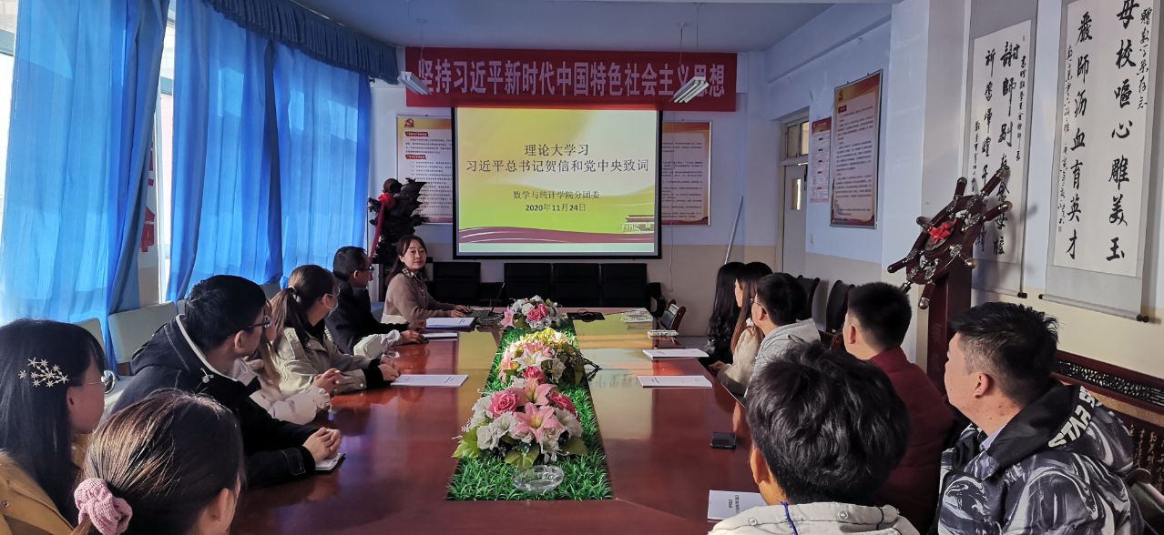2020年11月24日下午4.30分,数学与统计学院分团委组织我院全体各级团干部于三教A段六楼会议室共同学习习近平总书记贺信和党中央致词,学生工作办公室辅导员李毛毛和张旭东参加此次学习交流会,参会人数共计20余人。