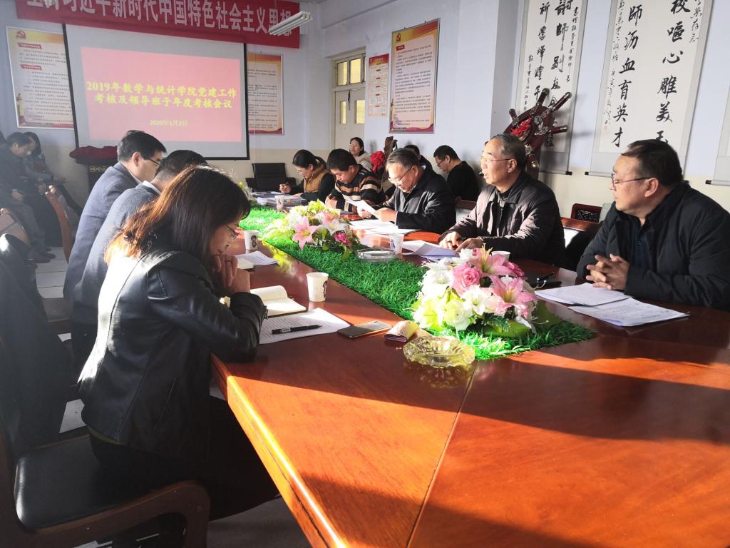2020年1月2日下午,副校长张勇为组长的学校考核小组成员参加了数学与统计学院2019年度党建工作和领导班子述职考核测评会。学院全体教职工和学生代表参加了会议。会议由数学与统计学院党委书记主持。