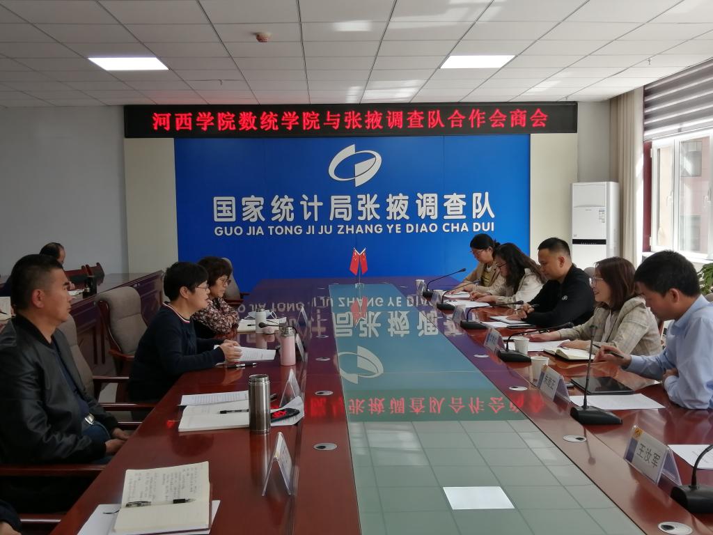 4月24日下午,数学与统计学院院长郭育红、副院长朱睦正、王学忠带领应用数学教研室相关教师,前往国家统计局张掖调查队就双方合作事宜进行交流会商。国家统计局张掖调查队党组书记、队长张颖及各室负责人参加座谈会。