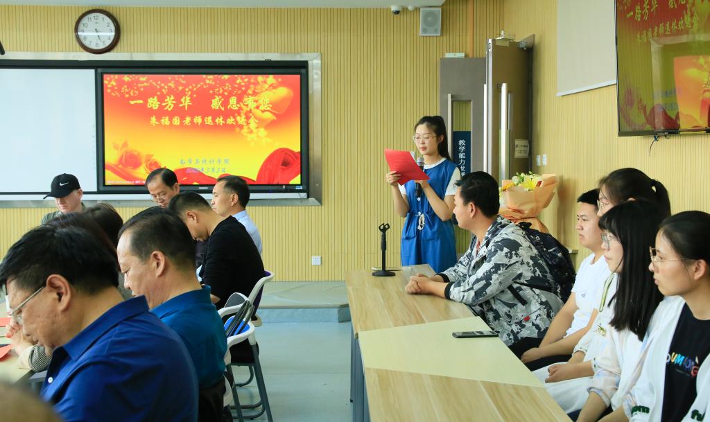 5月5日,数学与统计学院在教发中心905为即将退休的朱福国教授举办“一路芳华感恩有您”退休欢送会。欢送会由学院院长郭育红教授主持,校长张汉燚教授,学院联系领导、党委常委、教务处处长赵柱教授出席,学院全体教职工、数学与应用数学专业2019级1班全体学生和部分学生代表参加了欢送会。