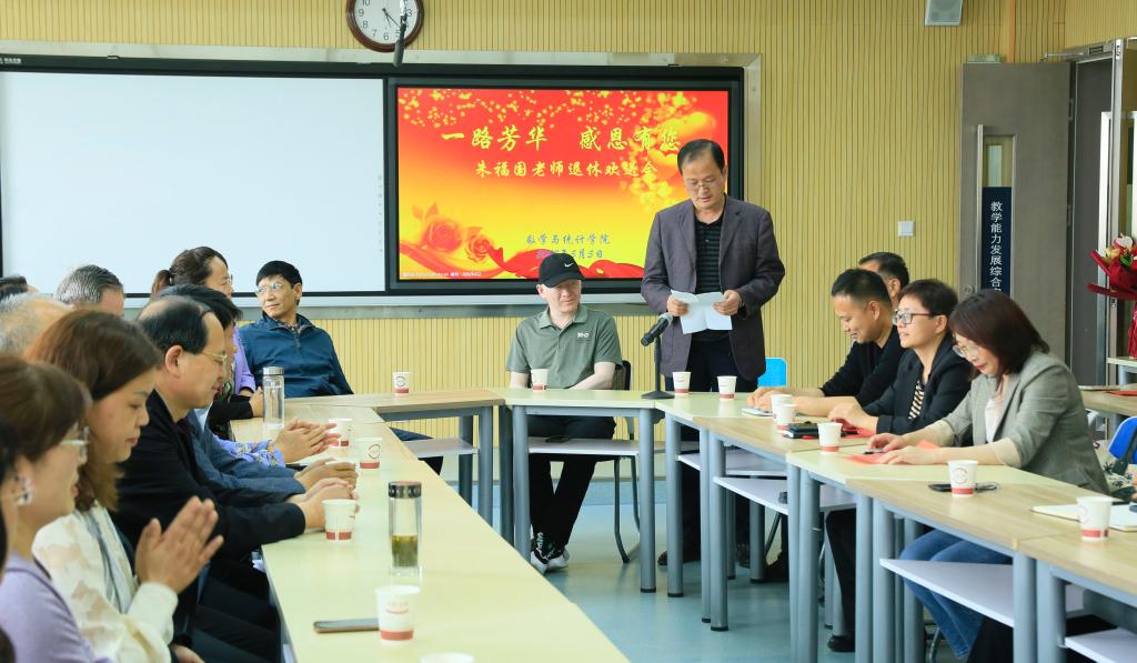 朱福国老师对学校和学院对自己的关心关爱表示感谢,并祝愿学校和学院发展更好、更快、更强。教师代表蔺海新副教授和学生代表丁月洁分别发言,对朱福国老师倾尽丹心育桃李,奉献韶华铸师魂的辛勤付出和谆谆教导表示感谢,同时表达了对朱福国老师的依依惜别与不舍之情。