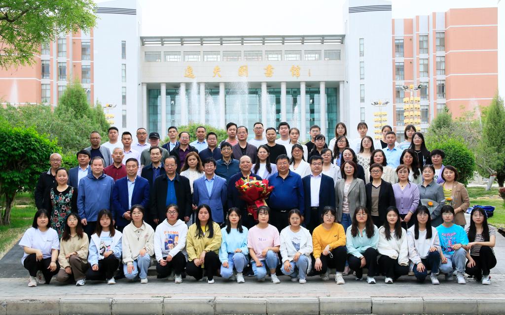最后,教师代表和学生代表为朱福国老师送上鲜花和祝福,并在图书馆前合影留念。