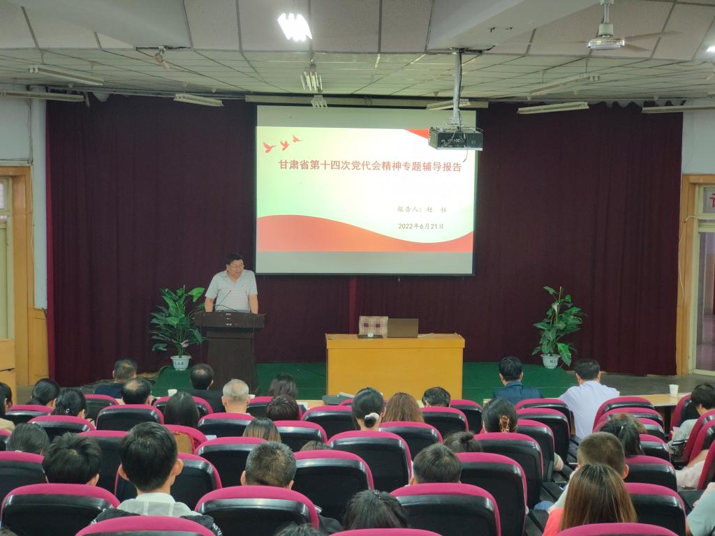 报告会上,赵柱从甘肃省第十四次党代会召开的基本情况、充分认识学习宣传贯彻省第十四次党代会的重大意义、全面准确把握省第十四次党代会的精神实质、精心组织迅速兴起学习宣传贯彻省第十四次党代会精神的热潮等四个方面对甘肃省第十四次党代会精神作了全面深入的解读,并结合国情、省情、校情和具体实例对学校面临改革、寻求突破、提升发展的关键时期,抓好用好党代会提出的新思路新部署新要求将是一次新的发展机遇进行了阐释,要求学院、师生应在幸福美好新甘肃、富民兴陇新局面的建设中找准自身定位、谋划发展、踔厉奋发、有所作为。