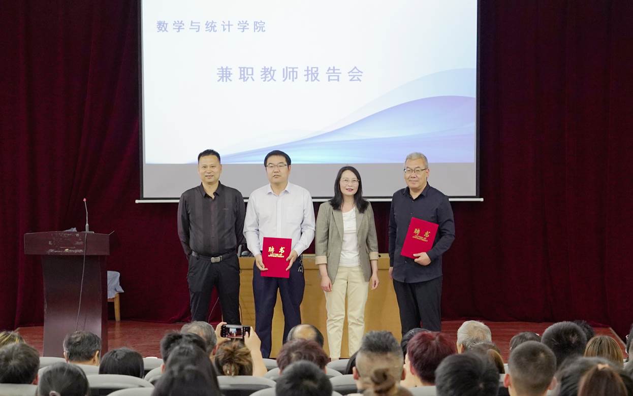 5月16日下午,数学与统计学院在学术一厅举行数学与应用数学专业基础教育一线兼职教师聘任仪式及兼职教师报告会。学院全体教师和数学与应用数学专业学生共300余人参加了报告会。