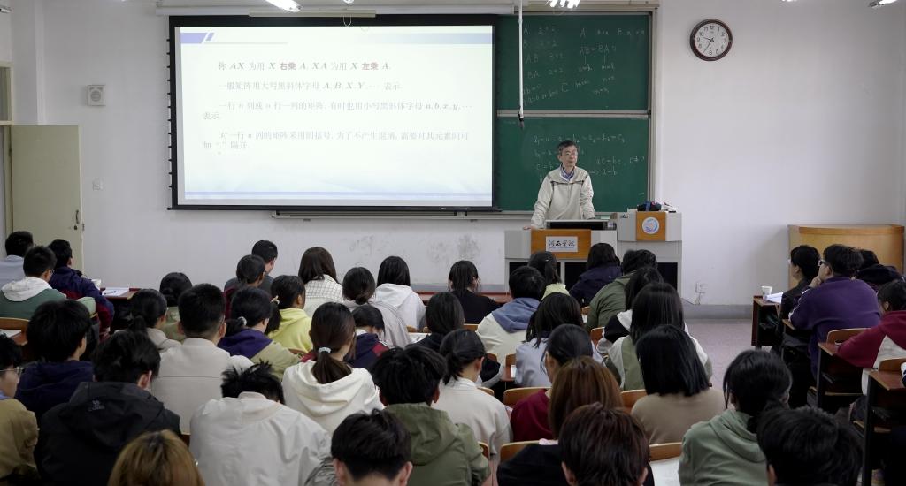 蔡志杰教授讲解深入浅出,抽丝剥茧,富有激情和感染力,让同学们对矩阵的乘法有了深入的理解,并且运用大量的实例,启发同学们积极思考,取得了良好的教学效果。此次活动的举行,提高了学生学习《线性代数》课程的学习热情。同时,通过教学示范课活动,各位教师对全面提高课堂教学质量有了更深入的理解。