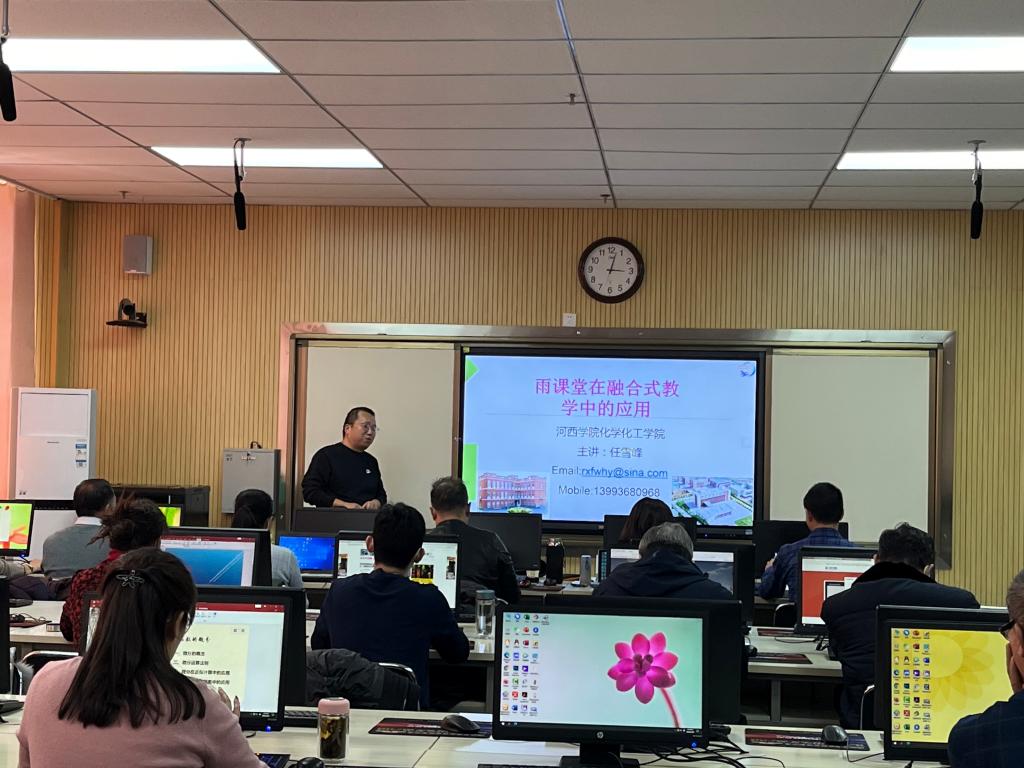 为进一步推进课堂教学改革创新,促进信息技术与数学学科课程的深度融合,提升教师线上线下资源融合的混合式教学能力,2月24日,数学与统计学院邀请信息技术与传媒学院的杜建荣副教授和化学化工学院任雪峰教授分别结合超星泛雅和雨课堂教学平台进行了线上线下资源融合的混合式教学应用培训,全院教师参加了培训。