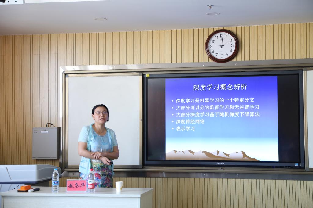 徐惠平副教授,以运筹学知识为背景,引入了运筹学一个重要学科分支博弈论,讲解了在特定条件制约下相关方采取最优对应策略的理论和方法,并举例说明例了对策论知识在各类学科的广泛的应用;李荣敏副教授分别从风险及其管理手段、保险的原理与作用、精算教育的历史与现状这三个模块出发,为大家讲解了风险管理与精算知识;魏益民教授从广义逆的经典文献出发,为大家讲解了广义逆的发展史和最小二乘法的由来和发展;赵冬华副教授利用深度学习示意图,为大家介绍了深度学习入门需要的数学知识和深度学习的常用技术。