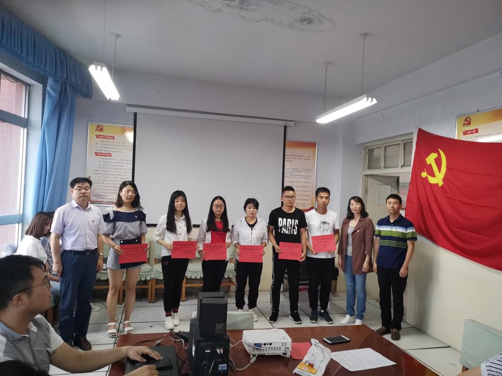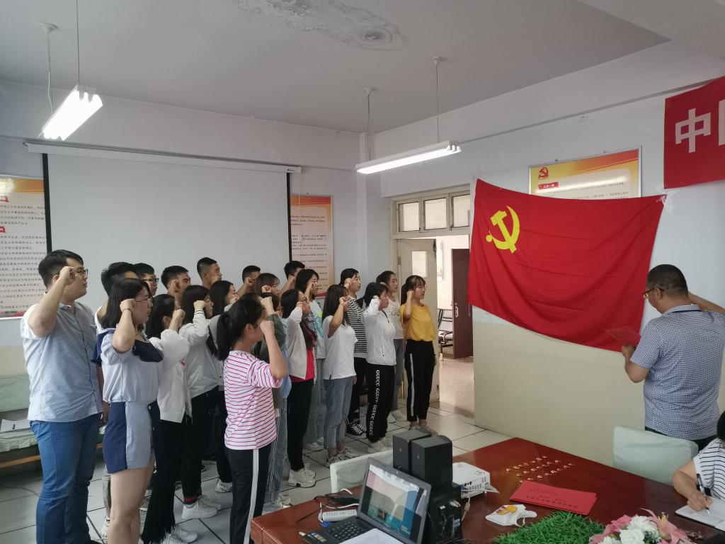 2019年6月25日下午4:30分,在庆祝建党98周年之际,数学与统计学院党委在学院党员活动室举行了庄严而隆重的学生预备党员宣誓活动。学院党委委员和师生党员出席了此次活动。